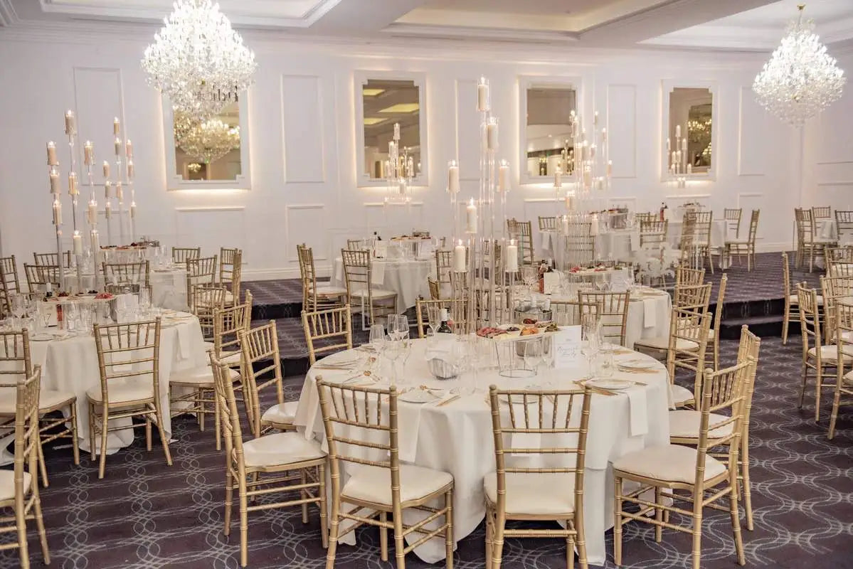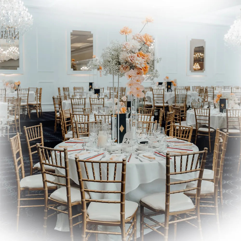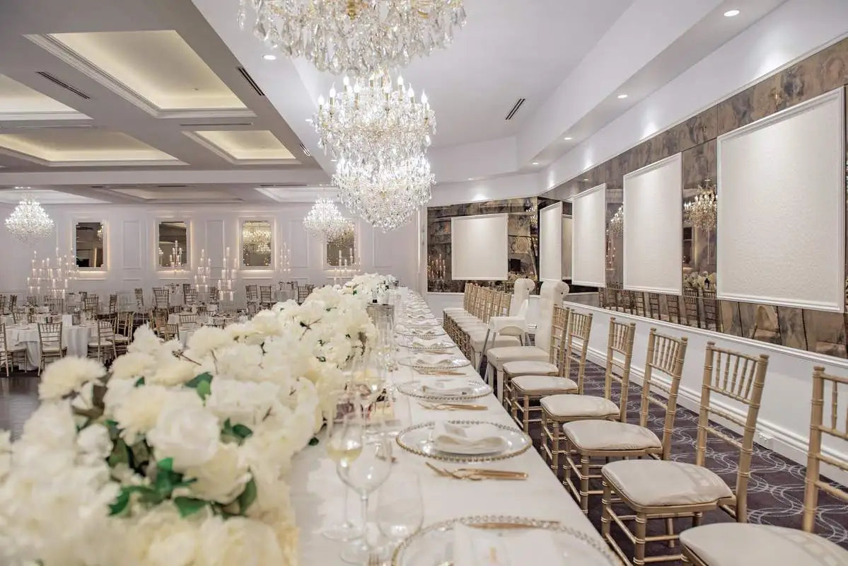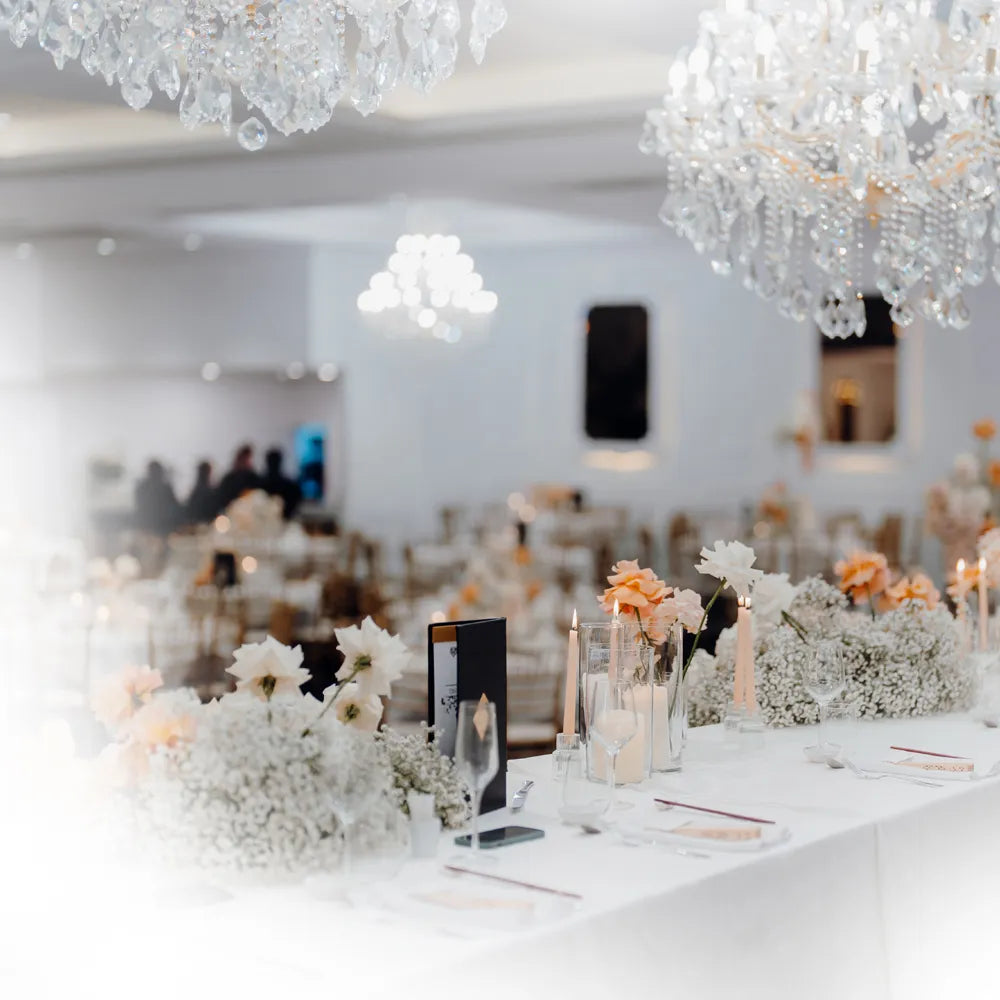 Romantic and elegant, this magical room seats 70-240 people in air-conditioned comfort and is perfect for that smaller wedding or special event. With superb lighting and beautiful soft decor, the ambience is charming and surprisingly intimate. Yet the Delphinium Room has all the features of the grandest ballroom with both chandeliers and wall lighting, a long mirrored wall and elevated bridal table, a very spacious dance floor, fully serviced bar and a beautiful staircase for that grand entrance. The Delphinium Room offers very flexible seating arrangements, depending on the style of your function, and is also very popular for dinner dances and a wide range of corporate events and luncheons.
